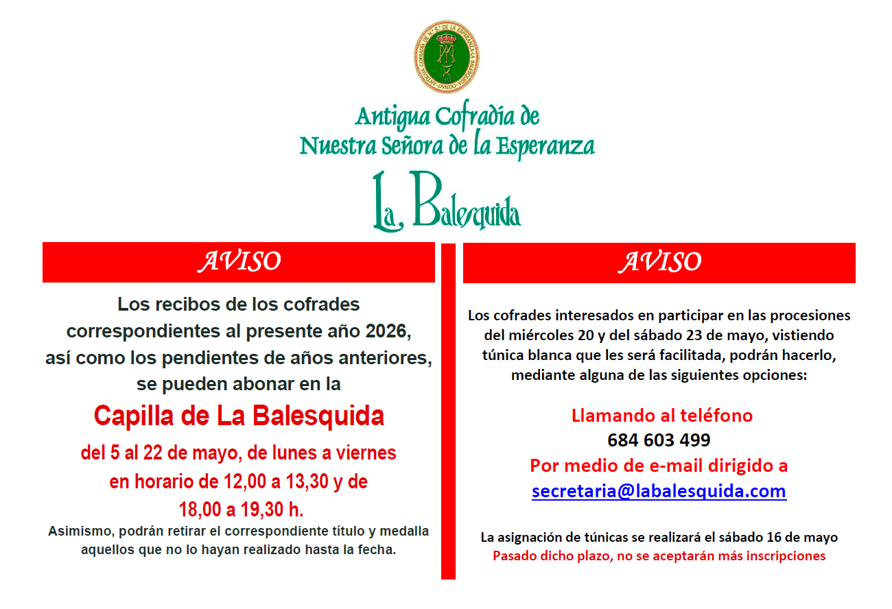 Imprime y cubre el documento adjunto, firmándolo por ambas caras, y deposítalo en la Capilla o envíalo por correo. En pocos días nos pondremos en contacto contigo. Si se trata de menores de edad, la solicitud debe ser firmada por el padre o la madre, indistintamente. Deberá acompañarse, siempre, justificante de estar bautizado.