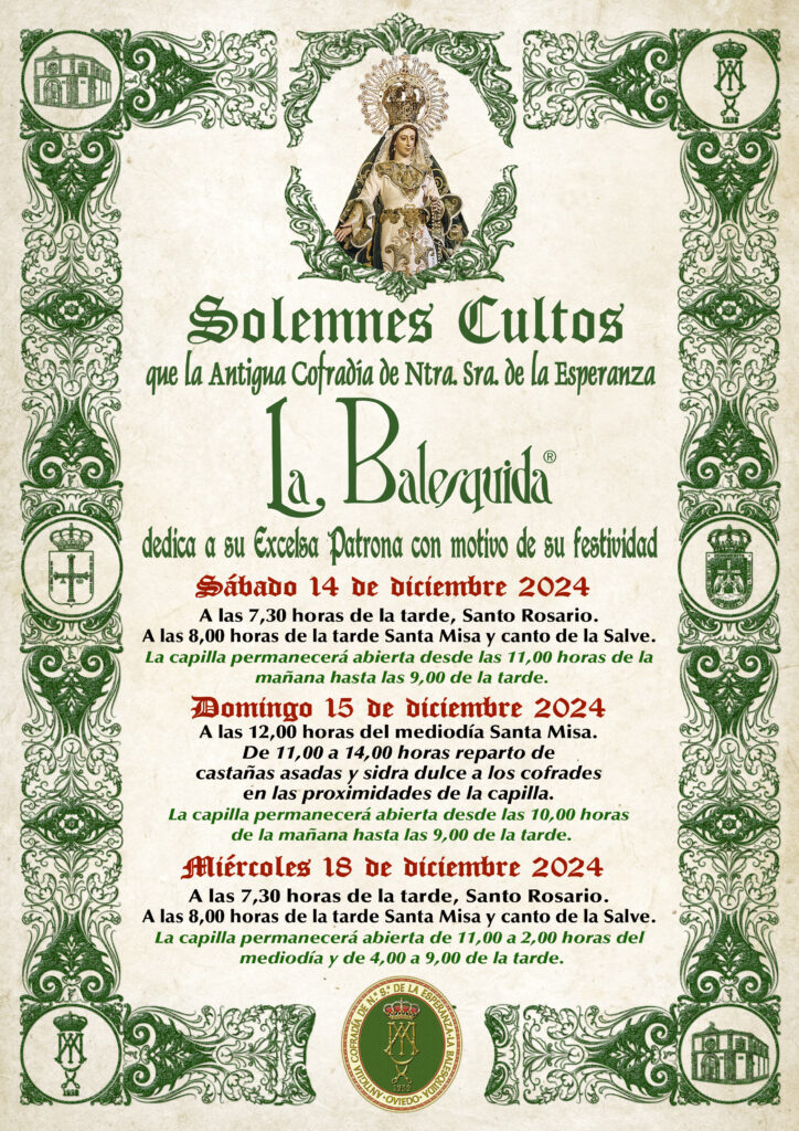 Solemnes Cultos dedicados a Nuestra Señora de la Esperanza – 14-15-18 Diciembre 2024 Publicada en 3 diciembre, 2024 por admin Publicada en Noticias de La Cofradía Deja un Comentario
