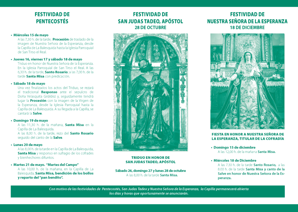Solemnes Cultos dedicados a Nuestra Señora de la Esperanza – 16-17-18 Diciembre 2023